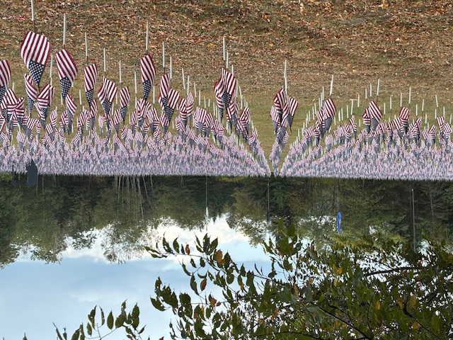 Volunteers gathered to install the flags in the Field of Heroes flag display and to remember the lives lost in Operat...